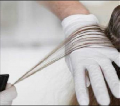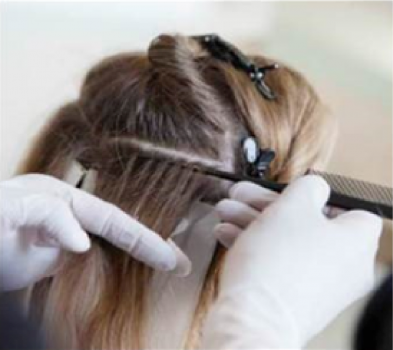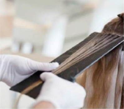 3) 绘画:将取出的少数头发放于画板,从染碗中取出染料或者漂料涂抹其上,进行创