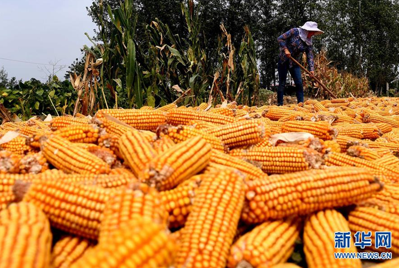 近日,河南省新郑市观音寺镇唐户村村民在晾晒收获的玉米。 秋收时节,产粮大省河南各地秋粮陆续成熟,当地农民抢抓农时适时收获,田间一派繁忙景象。 新华社记者李安摄
