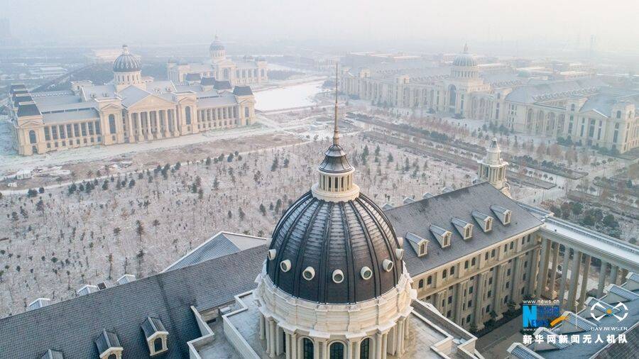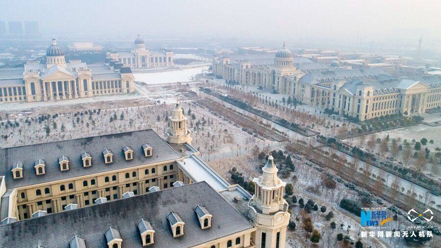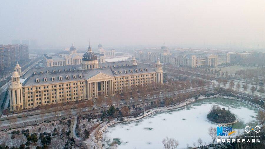 1月9日,郑州市区大部区域开始降雪,雪后的郑州龙子湖高校园区的欧式建筑,宛如将人们带入到冰雪王国。 郑州龙子湖高校园区位于河南省郑州市郑东新区,主要由华北水利水电大学、河南农业大学、河南财经政法大学等15所高等院校组成。新华网发(郭浩 摄)