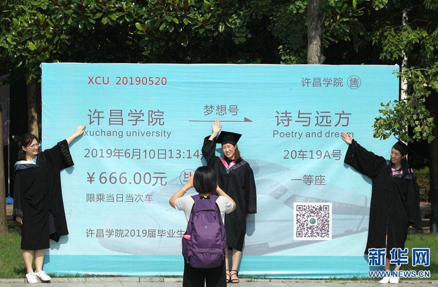 又到一年高校毕业季,许昌学院的应届毕业生们纷纷拍摄各种造型的毕业照,给大学校园的青春时光留下美好记忆。新华网发(牛书培 摄)