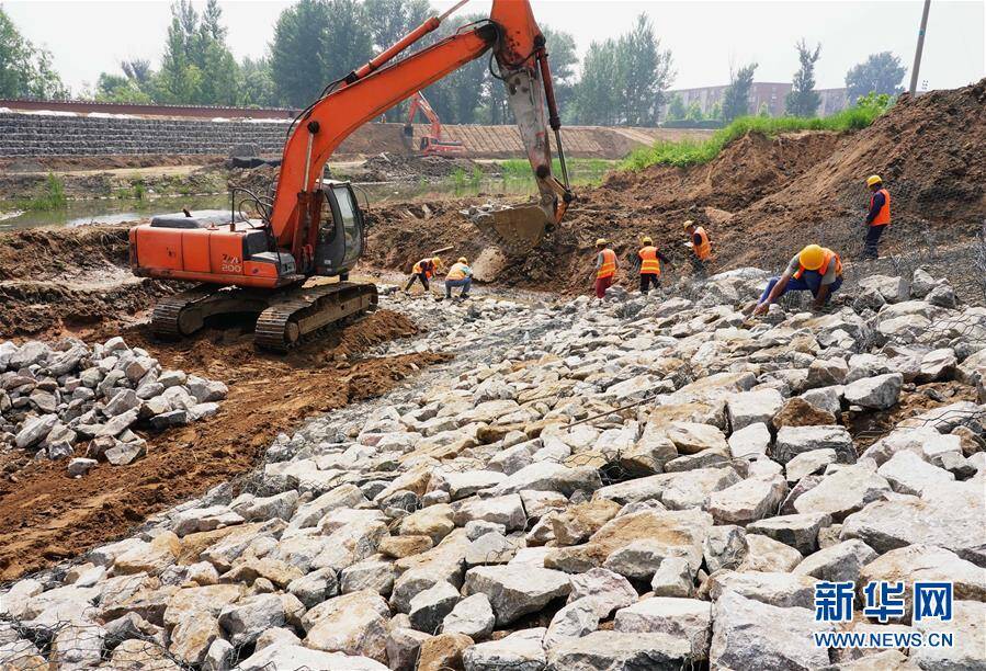 6月18日,工人在唐山迁安市西沙河治理工程工地施工。新华社记者 杨世尧 摄