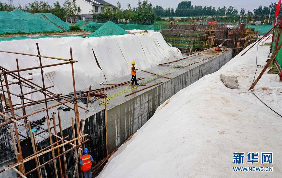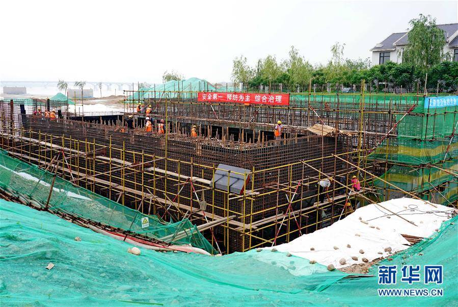 6月18日,工人在唐山迁安市滦河西沙河引水工程引水泵站工地施工。2018年以来,河北省唐山市政府在建设生态城市和持续改善水生态环境过程中,从源头上治污,从根本上改善河流水质,取得良好的效果。截至目前,该市全域封堵整治非法入河排污口1136处,拆除涉河违建1568处,清理河道垃圾1658处、135万立方米,清淤河道34条、161.9公里、450万立方米。新华社记者 杨世尧 摄