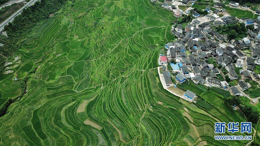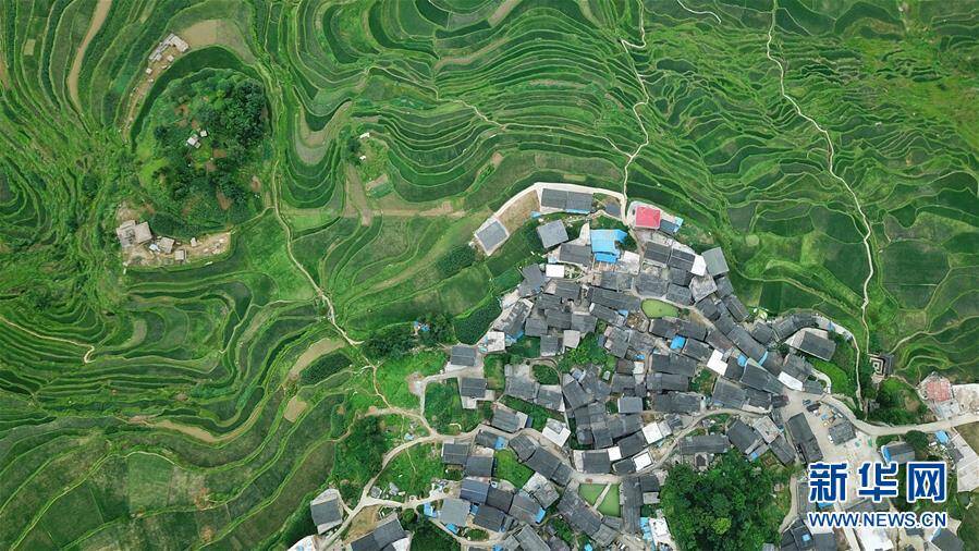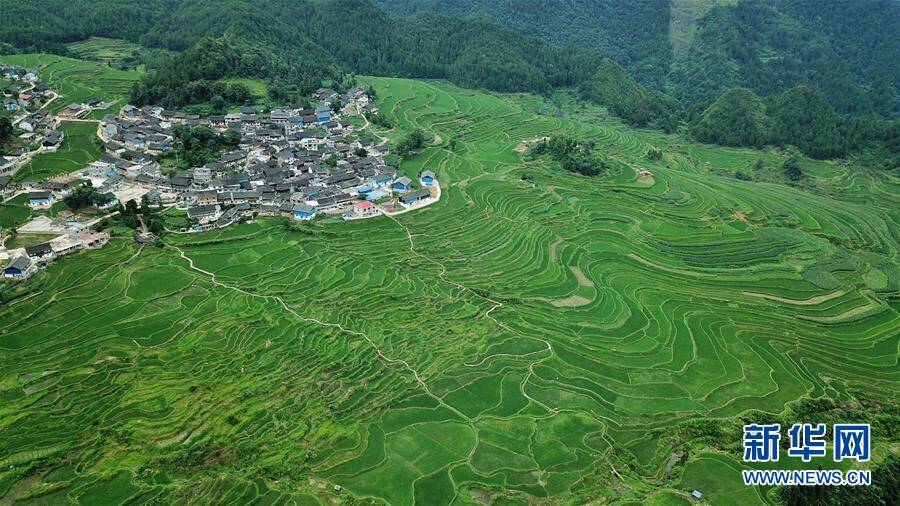 7月1日无人机拍摄的贵州省丹寨县龙泉镇高要梯田。 仲夏时节,位于贵州省丹寨县龙泉镇的高要梯田美景如画。 新华社记者 欧东衢 摄