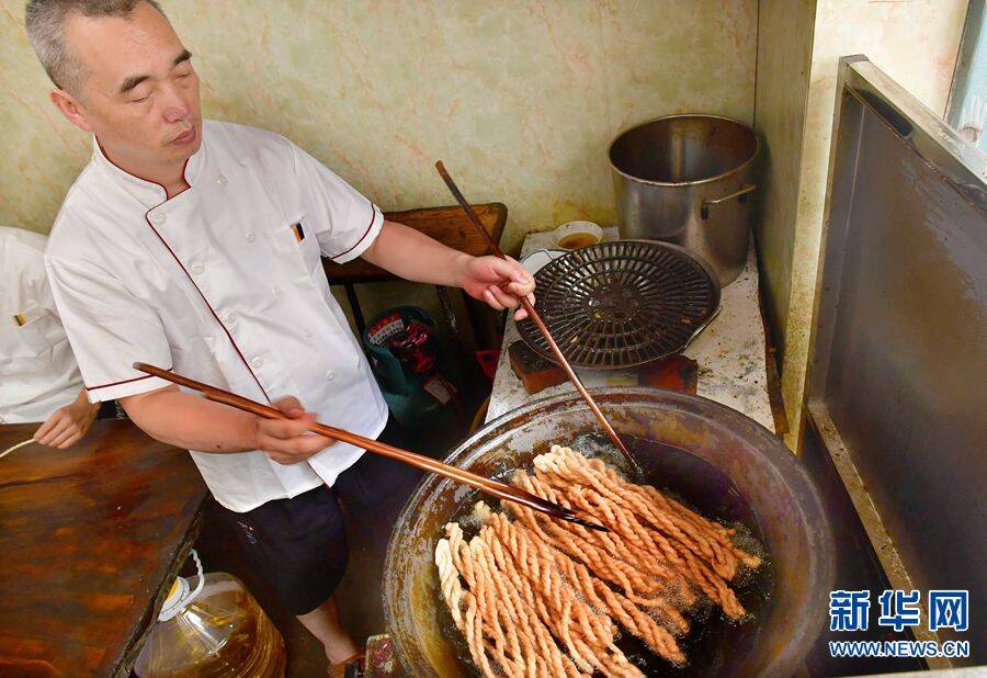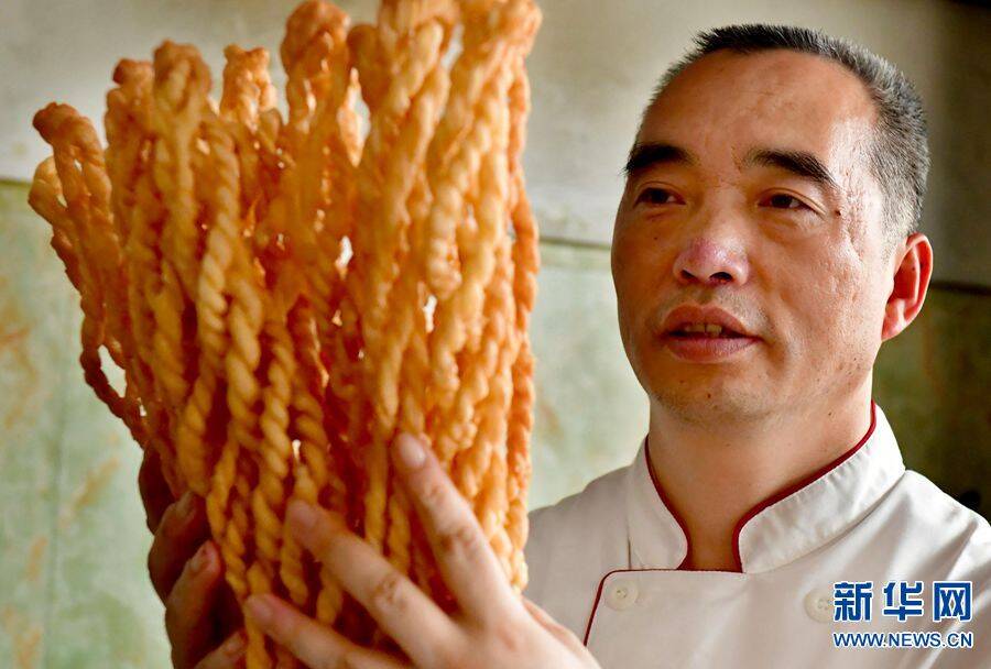 2016年,张氏8股麻花入选“汝阳县非物质文化遗产”。作为汝阳特色美食,“张氏8股麻花”不仅在当地生意兴隆,而且还远销北京、上海、山东等地,成为颇有名气的特色食品。新华网发(高山岳 摄)