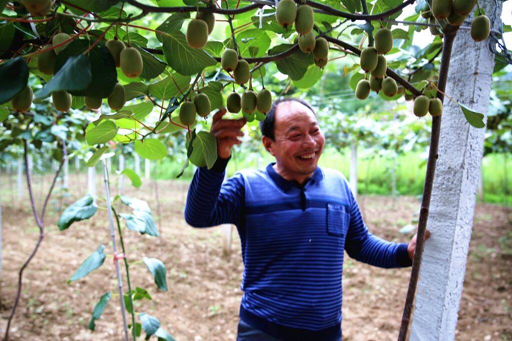 7月1日,地处伏牛山深处的瓦窑沟乡金庄村贫困户黄怀敏发展的12亩猕猴桃园,硕果累累、挂满枝头,这些新品种黄心猕猴桃已被外地客商以每斤8元的价格预订一空。瓦窑沟乡金庄村是国家级贫困县河南省卢氏县的贫困乡、贫困村,50岁的黄怀敏是个建档立卡贫困户。2018年脱贫后,他干劲更足了,今年12亩猕猴桃已进入盛果期,另外他还发展了2.1万袋代料香菇,栽种了7亩连翘、3亩重楼等中药材。“年底开回来一辆小轿车没问题。”黄怀敏说,他难掩心中喜悦,猕猴桃园里回荡着他幸福的笑声。 张海军摄